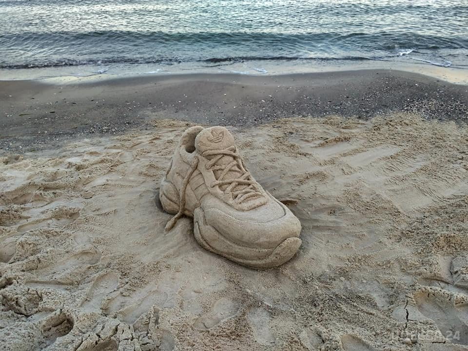 17:39 19.05.21 Одесситка создала на пляже гигантский кроссовок из песка На создание песчаной скульптуры одесситке Ирине Загайчук понадобилось 5,5 часов.