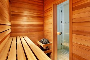 Также как и в русской, для строительства и отделки помещения в финской бане используется натуральное дерево, что создаёт особую атмосферу в парной. Температура здесь значительно выше и достигает 110 градусов, но благодаря невысокой влажности (около 25-30 процентов) жар переносится легче.
