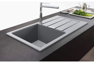 Гранитная мойка выполнена из соединения акрила и кварца, которое имеет высокие технические характеристики, во многом превосходящие свойства натурального гранита.
