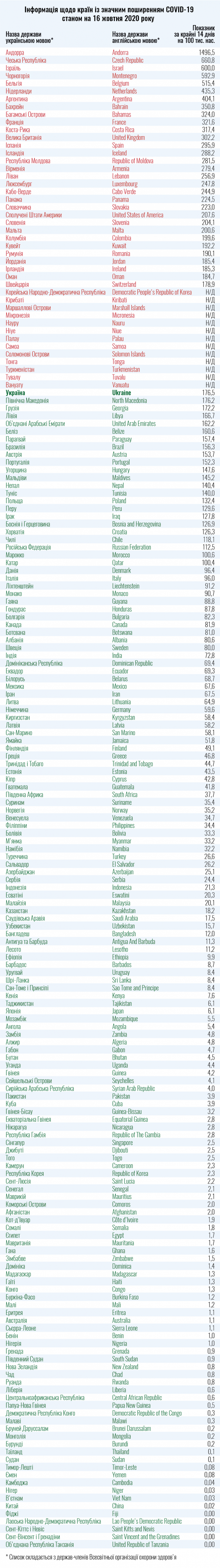 Отмечается, что с учетом количества активных случаев COVID-19 на 100 тыс. населения, "красными" сейчас являются 44 из 194 стран, которые являются членами Всемирной организации здравоохранения.