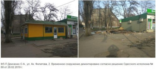 Так с 15 марта 2019 года в Одессе были демонтированы 8 временных сооружений и еще 13 незаконно размещенных элементов торговли — киосков, павильонов, трейлеров и прочего.