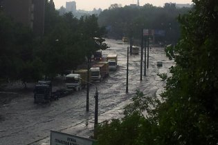 На этот раз сильный ливень вызвал буквально потоп на городских улицах. Сейчас работу приостановил почти весь городской электротранспорт. Уровень воды на дорогах превысил отметку в 20 см.