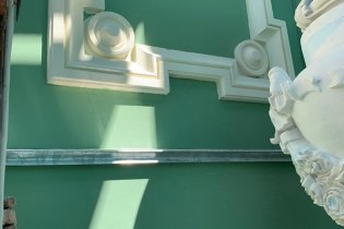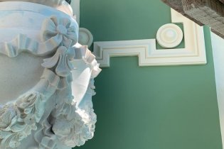 Говоря о цвете фасада, Сердюк отметила, что зеленый цвет фасада дома Руссова не случаен. «Он является очень хорошим фоном для скульптур и лепного декора. Оттенки зеленого могут быть разными, но это всегда тот цвет, который придает фасаду особые характеристики и делает его акцентным в среде», - сказала Елена Сердюк.