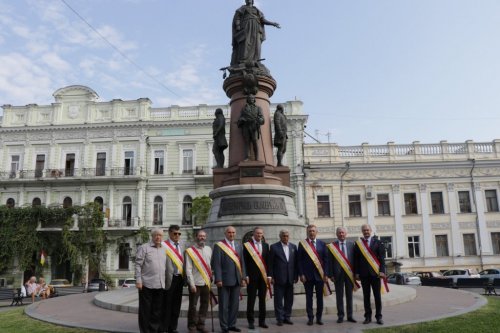 В юбилейный, 225-й день рождения Одессы с самого утра началось официальное празднование дня города. Как сообщает пресс-служба мэрии, традиционно почетные граждане города возложили цветы к памятникам Иосифу Де Рибасу, Григорию Маразли, Атаману Головатому и Михаилу Воронцову.