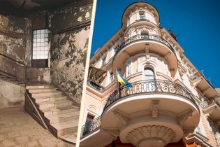 Этот дом на пересечении Софиевской и Преображенской хорошо запоминается благодаря красивым башням-эркерам и нежному цвету фасада после реставрации. Но его жильцы вынуждены наблюдать изнутри другую картину — и она куда менее эстетична.