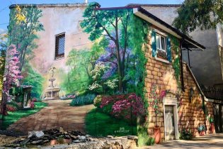 В начале улицы Новосельского возле перекрестка пяти дорог ободранную стену дома превратили в райский уголок с помощью красок и таланта уличных художников из студии М97. Инициатором трансформации стал руководитель БФ «Доброе дело» Анатолий Кавун. «Финансовая часть есть в любом процессе и по данному она составила 20.800 грн (15.000 грн работа ребят (по себестоимости) и 5.800 грн ремонт стенки). Все работы оплатил Сергей Келюшок за что ему ОГРОМНОЕ СПАСИБО!!!», — сообщил подробности Кавун. Общественник собирается рядом возродить сквер со скамейками и деревьями, который когда-то здесь был. Но затем деревья срубили, а вместо скамеек поставили МАФ-наливайку. Сейчас здесь просто залитая бетоном и асфальтом площадка, на которую имеют виды местные предприниматели, желающие создать там очередной бизнес-проект вместо сквера.