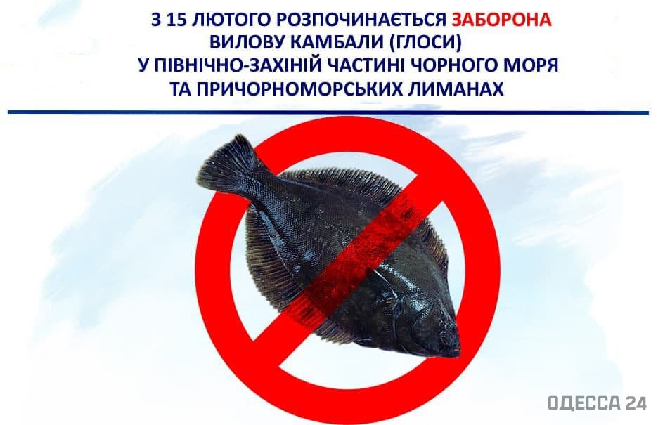 С 15 февраля по 30 апреля на территории Одесского региона устанавливается запрет на промышленный и любительский вылов камбалы (глоссы).