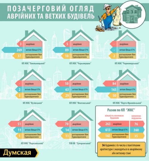 Всего в Одессе насчитывается свыше 43 тыс. жилых зданий, из них 8 тыс. - многоквартирные. Состояние половины обследованных домов за последние годы ухудшилось.