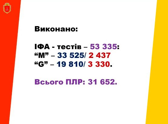 На сегодняшний день в Одессе сделано 9832 теста на иммуноферментный анализ (ИФА).