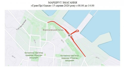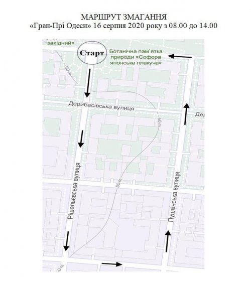 16 августа с 08:00 до 14:00 будет перекрыт въезд на ул. Пушкинскую (от ул. Бунина до ул. Ланжероновской) и ул. Ришельевскую (от ул. Ланжероновской до ул. Бунина) личного транспорта граждан, кроме спецавтотранспорта и промаркированных автомобилей и мотоциклов, участвующих в соревнованиях.