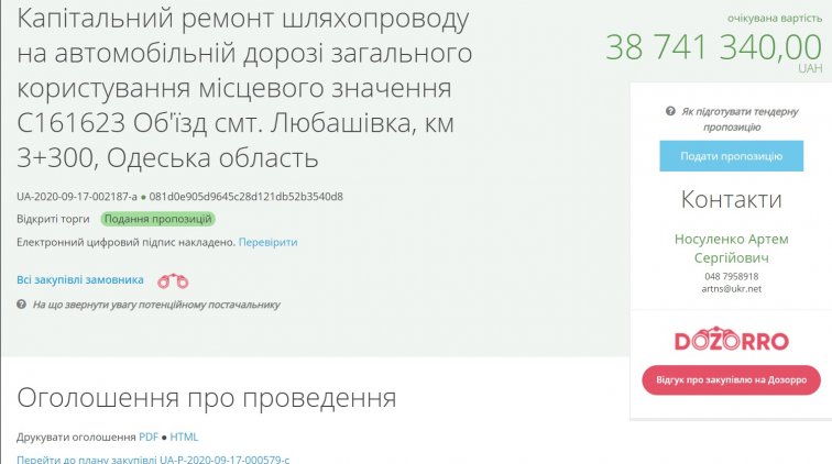Государственное предприятие «Служба местных автомобильных дорог» объявило тендер для поиска подрядчика, которому заплатят за капитальный ремонт путепровода на автомобильной дороге общего пользования местного значения на объездной дороге в пгт Любашевка.