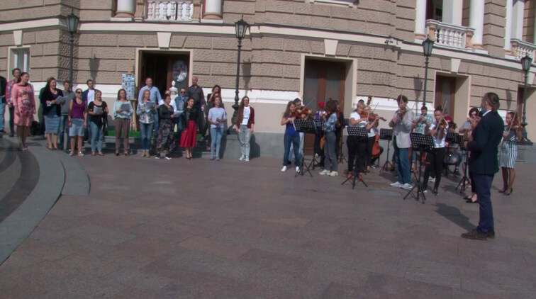 Символично, что 1 октября также отмечают и Международный день музыки. Особый подарок от театра сделали его артисты — актеры и певцы устроили концерт под открытым небом.