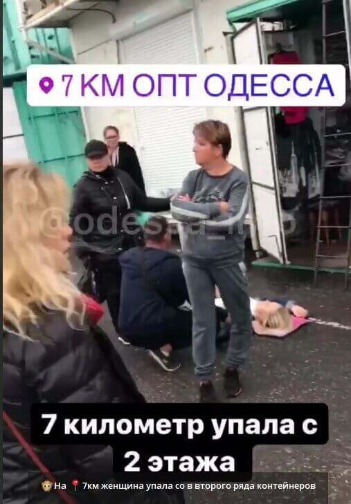 На промтоварном рынке «Седьмой километр» женщина сорвалась с высоты. Об этом сообщает телелеграм-канал «Одесса INFO».