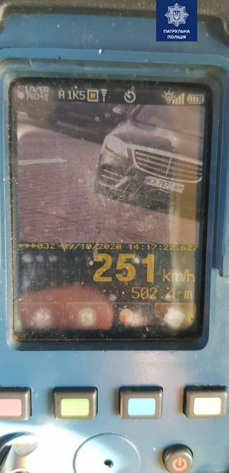 Заместитель главы Департамента патрульной полиции Нацполиции Украины Алексей Белошицкий сообщил о нарушителе, который удивил своей скоростью на трассе Киев-Одесса даже бывалых полицейских. Водитель «выжал» со своего Mercedes-Benz S 500 251 км/ч. Таким образом он превысил допустимое значение на 141 км/ч. СМИ отмечают, что это своеобразный рекорд среди зафиксированных нарушений. На водителя выписали постановление по ч.3 ст.122 КУоАП — штраф 510 грн.