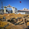 На участке у выезда из трамвайного депо каток трамбует щебеночное основание перед укладкой новых шпал и рельсов.