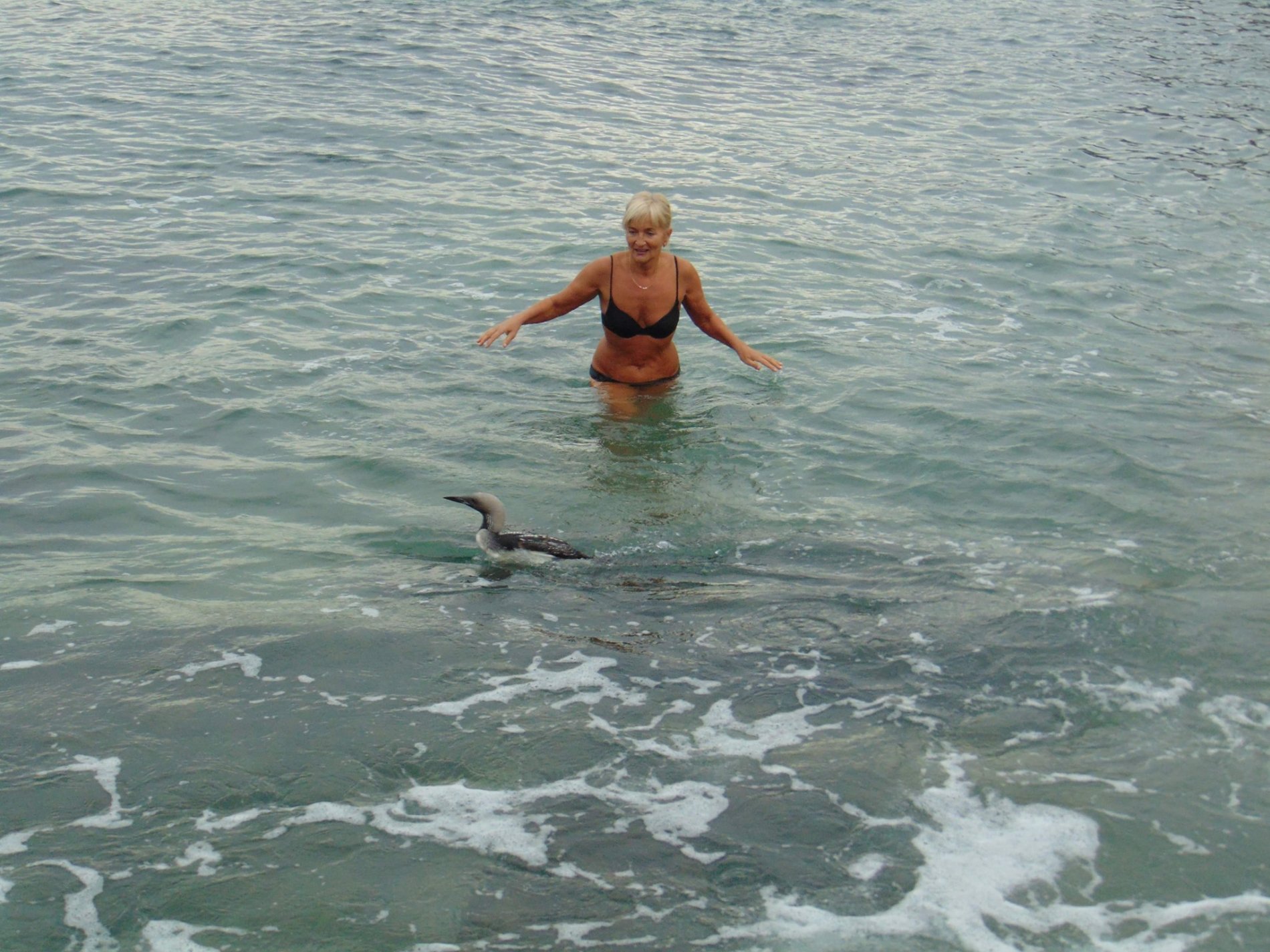 Одесситы обнаружили редкую для нашего региона птицу - чернозобую гагару, которая сидела на берегу. Обеспокоившись здоровьем птицы, они связались с экспертами, которые объяснили, что нужно делать. В итоге птицу отнесли к воде и отпустили на волю.