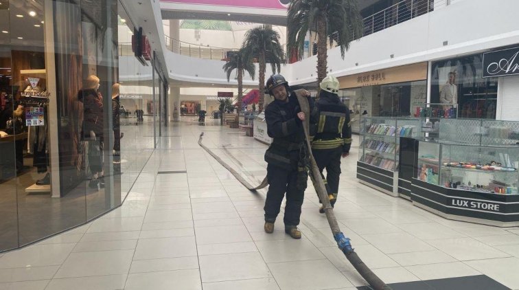 При срабатывании автоматической пожарной сигнализации персонал торгового центра провел эвакуацию людей на свежий воздух.