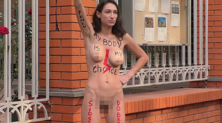 Женщина сбросила всю одежду, несколько раз прокричала лозунг «моё тело — мое дело», после чего кинула за забор дипломатического учреждения белую и красную вешалки — цветов польского флага. Также активистка оставила окровавленую одежду у здания — в знак того, что теперь аборты станут подпольными и опасными. После этого она, не называя своего имени, быстро пообщалась с журналистами и быстро ушла.
