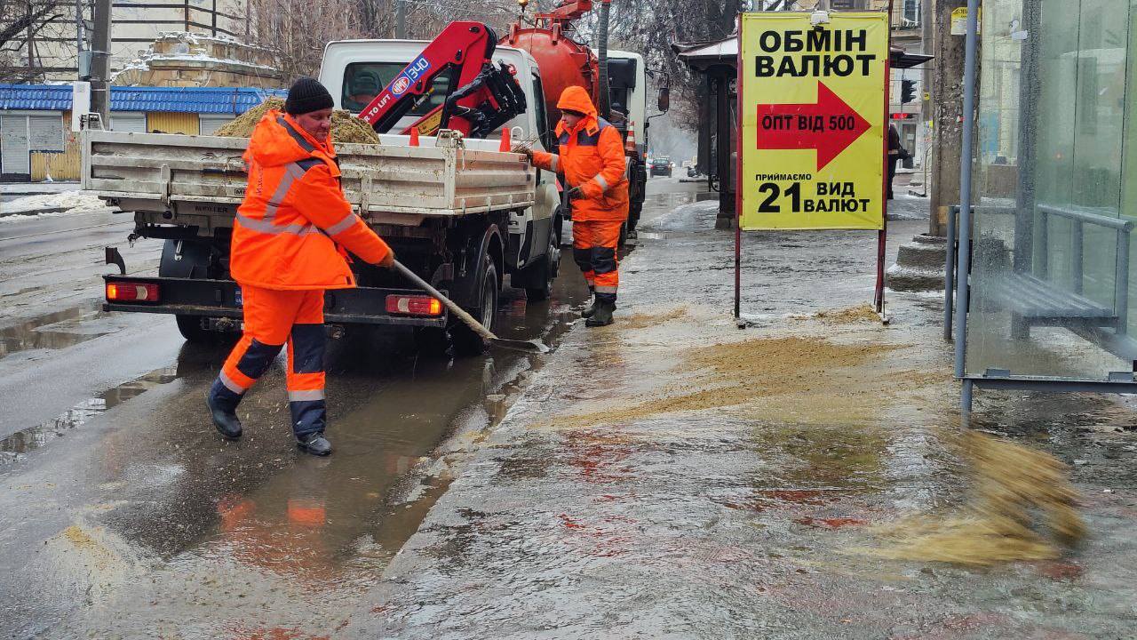 Из-за гололеда в Одессе коммунальные службы работают в усиленном режиме