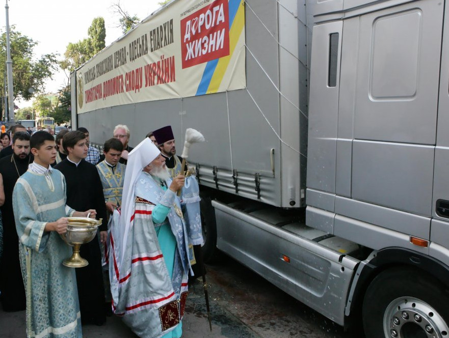 8 августа в 8:00 часов по ул. Преображенской, возле Свято-Успенского собора, состоялась отправка гуманитарной помощи от Одесской епархии и собранных продуктов для жителей Востока. Общественный совет при Одесской ОГА совместно с Одесской епархией и общественной организацией "Дорога жизни" отправили гуманитарную помощь мирным жителям в зону АТО.