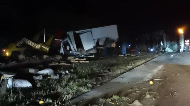 Очевидцы сообщают о еще двух грузовиках, который стали участниками ДТП. Трасса частично перекрыта, так как засыпана обломками.