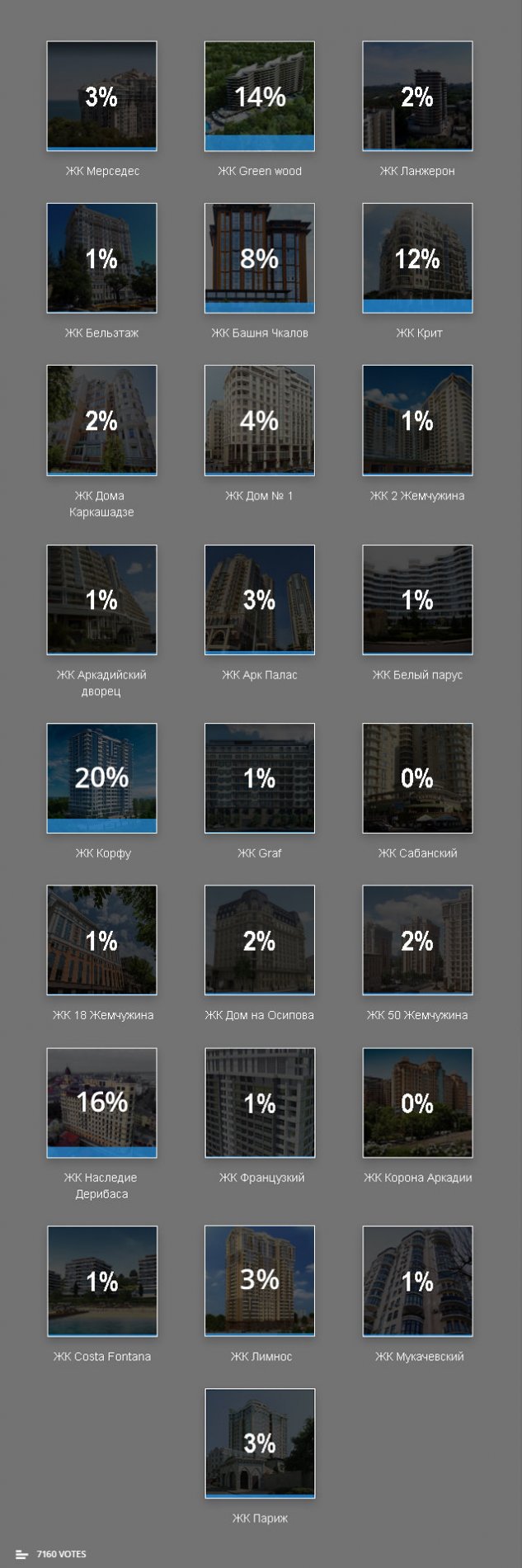По итогам голосования среди 25 жилых комплексов одесситы отдали предпочтение ЖК Корфу от строительной компании «Гефест».
