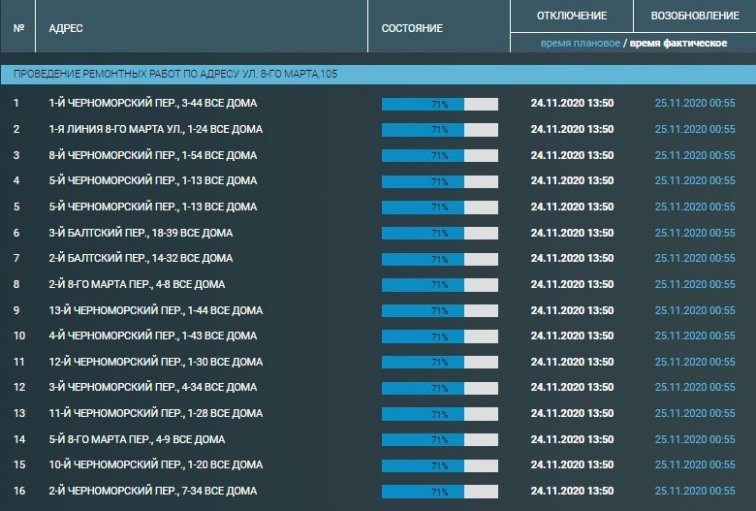 Также в call-центре отметили, что по улице 8 Марта устранению масштабной течки работам мешают подпочвенные воды и их будут откачивать, чтобы не обваливался грунт. После этого специалисты полностью заменят данный участок магистрали.