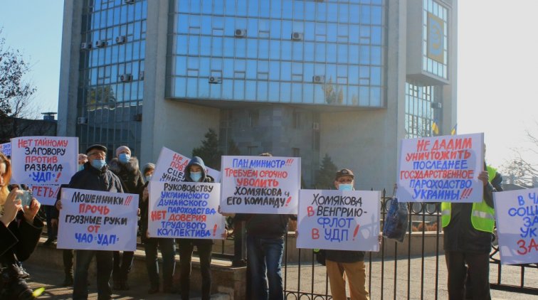 В пятницу, 27 ноября, в Измаиле на территории ЧАО "Украинское Дунайское пароходство" прошла акция протеста против передачи флота госпредприятия частной венгерской компании. Митинг организовали первичная профсоюзная организация пароходства совместно с независимым Дунайским профсоюзом работников водного транспорта "Справедливость".