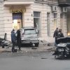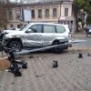 На перекрёстке Большой Арнаутской и Екатерининской столкнулись автомобили Toyota Prado и Audi. После чего автомобиль Toyota продолжил движение по инерции, наехал на светофор, а затем влетел на ступеньки магазина. Предварительно установлено, что водитель Toyota выехал на перекрёсток на красный свет светофора.