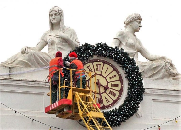 Скульптурная композиция «День и Ночь» на здании одесской мэрии снова выглядит некрасиво. На сей раз пострадала скульптура «День»: у нее повреждена часть груди.