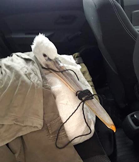 Это оказался редкий вид пернатых — кудрявый пеликан, возрастом меньше года. Выяснилось, что у него травмировано правое крыло и деформация запястного сустава.