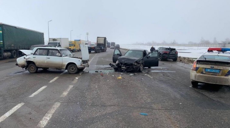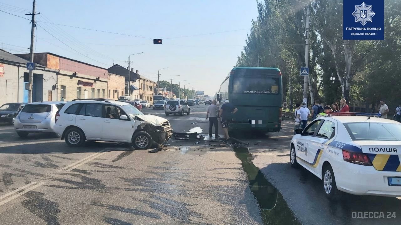 Четыре автомобиля - ВАЗ-217030, ВАЗ-21011, Volkswagen LT 46 и Jaguar - столкнулись около часа дня на Объездной дороге. Об этом сообщает пресс-служба Патрульной полиции в Одесской области.
