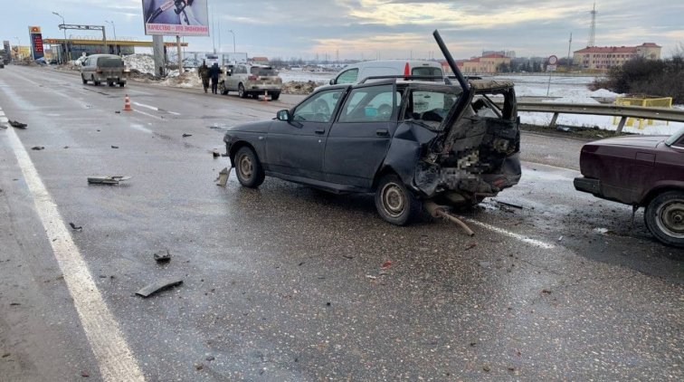 Сегодня, около 12:00 часов, на Объездной дороге водитель автомобиля Volkswagen Transporter не выбрал безопасную дистанцию и скорость, не учел дорожных обстоятельств, вследствие чего совершил столкновение с автомобилем ВАЗ-21112, который остановился в крайней левой полосе для выполнения разворота в разрешенном дорожной разметкой месте. После чего автомобиль ВАЗ-21112 отбросило на встречную полосу, где он столкнулся с автомобилями Acura MDX и ВАЗ-2107.
