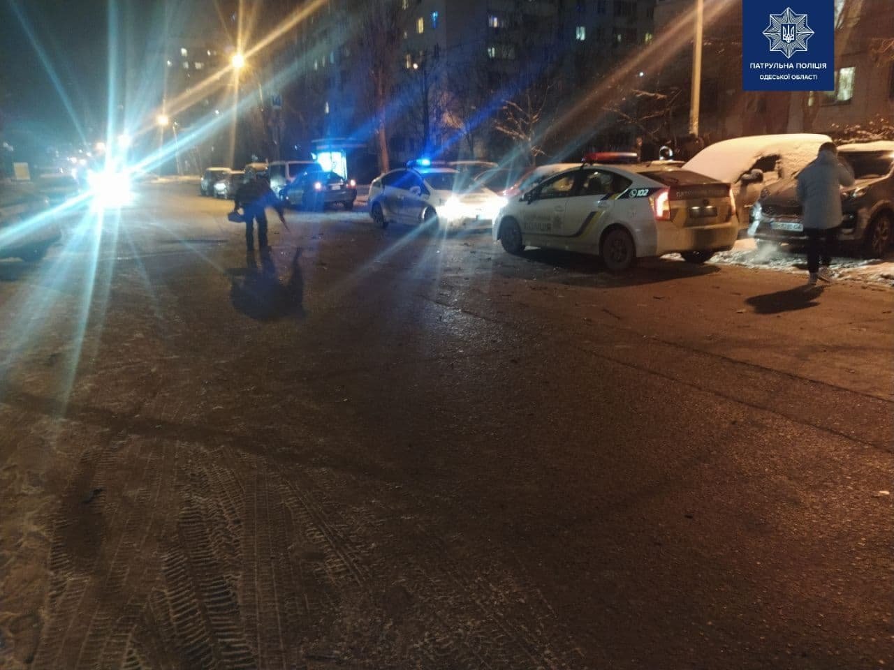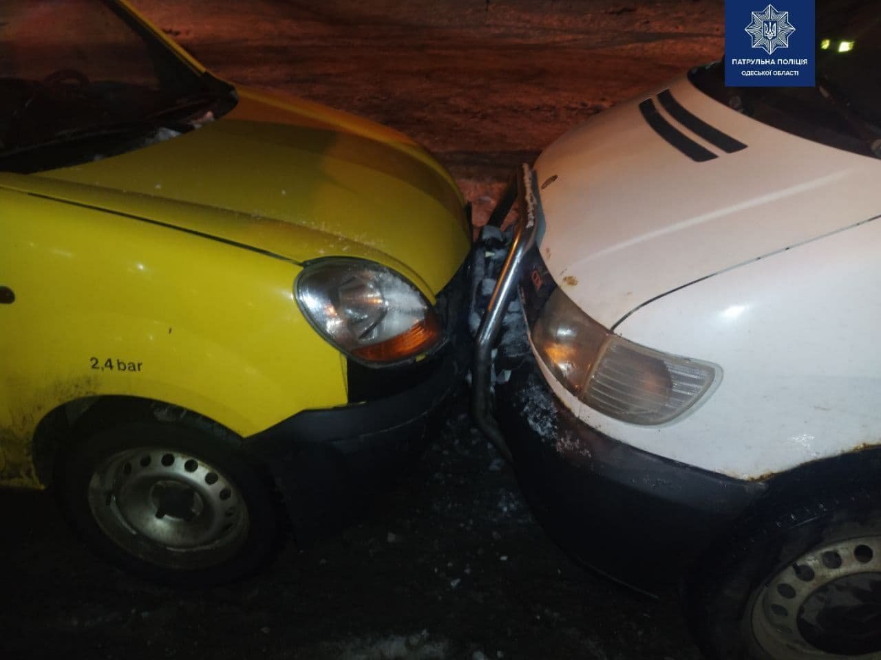 В Одессе в ночь на 8 февраля пьяный водитель Mitsubishi лоб в лоб столкнулся с автомобилем Skoda, который отлетел в припаркованные машины. Об этом сообщила пресс-служба патрульной полиции.