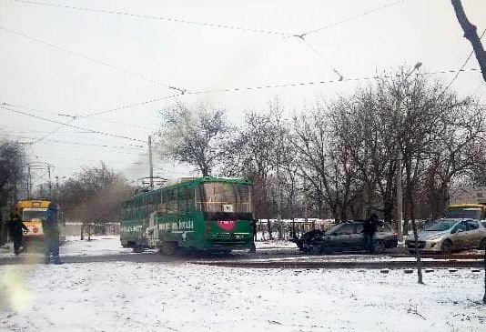 Утром 16 февраля на улице Ицхака Рабина, не доезжая улицы 25-й Чепаевской дивизии, не поделили дорогу трамвай и автомобиль BMW.