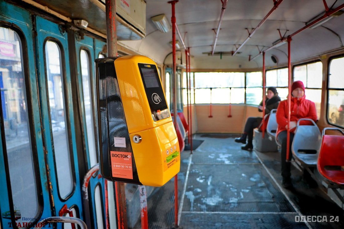 В одесских трамваях теперь рассчитаться за проезд можно безналично. Уже установили 100 специальных валидаторов для оплаты проезда.