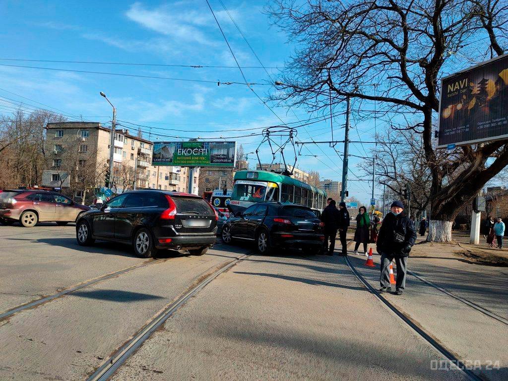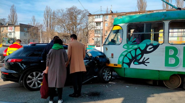 Сегодня, 4 марта, в районе 3-й станции Люстдорфской дороги водитель автомобиля «Инфинити», двигавшегося в сторону города, не предоставил приоритета в движении трамваю маршрута №3, который планировал совершить поворот, и врезался в него практически лоб в лоб.