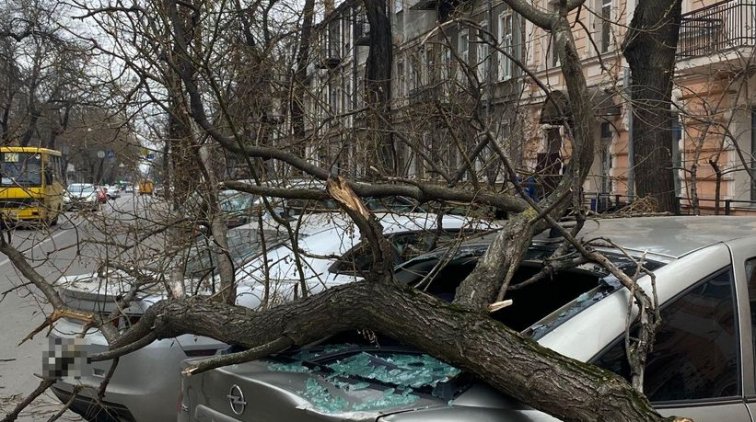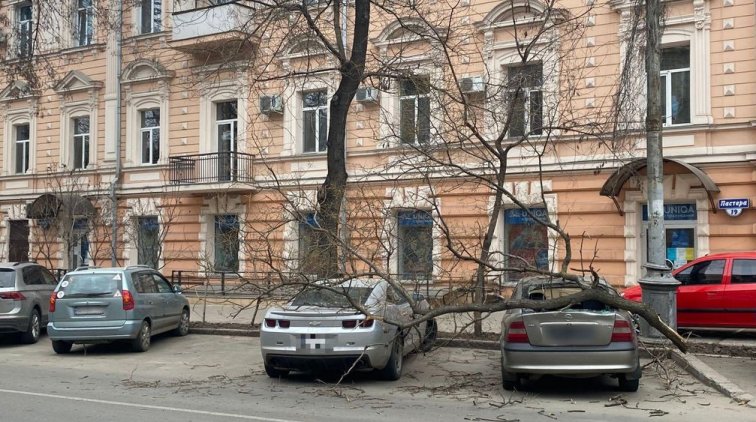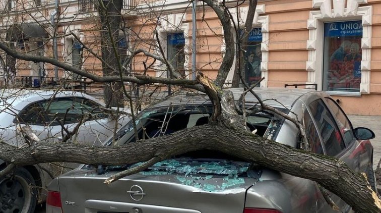 На город надвигается непогода, и ветер уже усиливается. Так, дерево рухнуло на Пастера, 9 прямо на автомобиль.