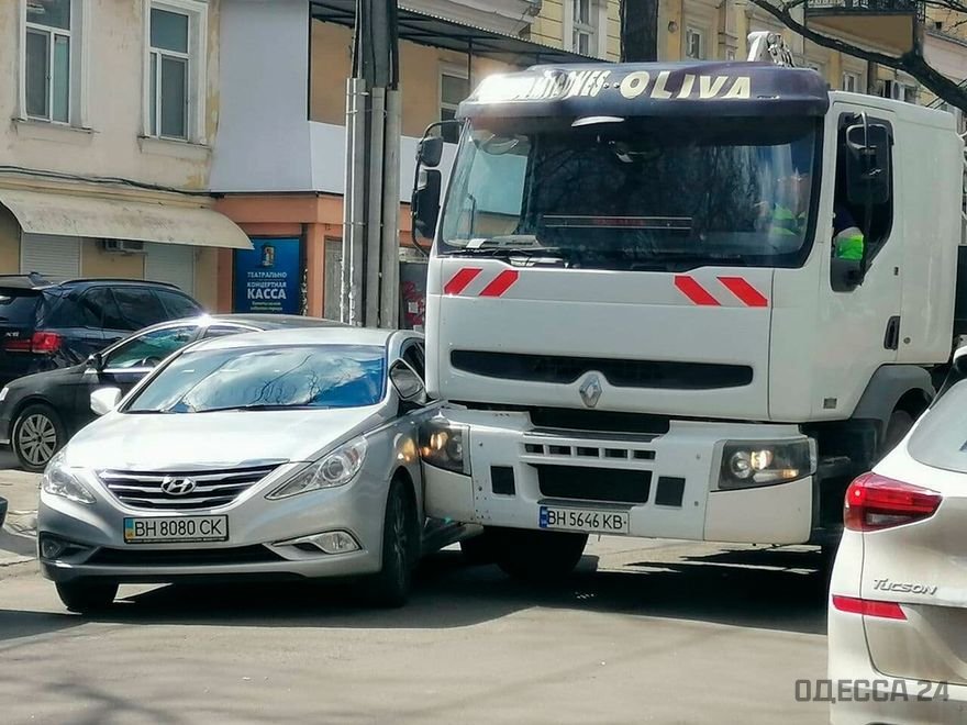 Автомобили двигались со стороны ул. Ришельевской. В результате столкновения на легковом автомобиле помято крыло и переднее сидение. Люди не пострадали.