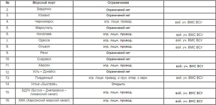 Согласно оперативной информации, в этих трех портах ограничена лоцманская проводка судов.
