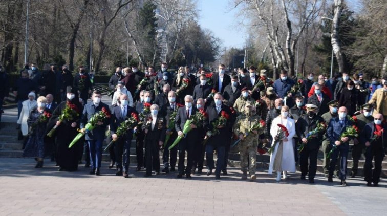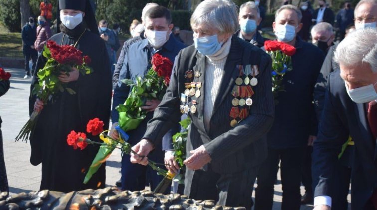 В этом году, как и в 2020, празднование происходит в условиях карантина, поэтому большого количества людей на площади 10-го Апреля нет. Люди всех возрастов, по несколько человек подходят к мемориалам.