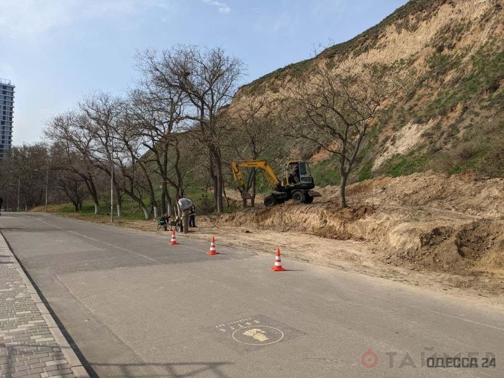 На склоне у пляжного ресторана «Санторини» в Одессе начались строительные работы —техника убирает грунт и расчищает площадку, которую затем обещают благоустроить, передает «Таймер».
