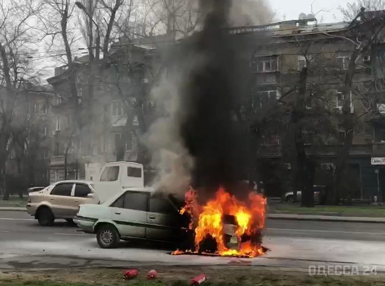 На проспекте Шевченко, напротив здания Одесского облсовета, загорелся автомобиль. Очевидцы утверждают, что слышали удар, но что стало причиной возгорания пока неизвестно.