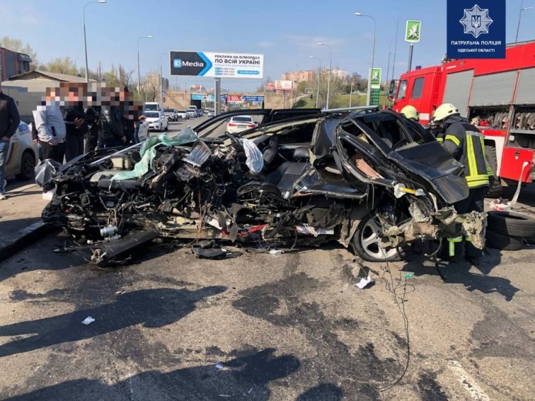 Машина наехала на металлическую конструкцию. Затем авто отбросило на Mercedes, который ехал в попутном направлении.