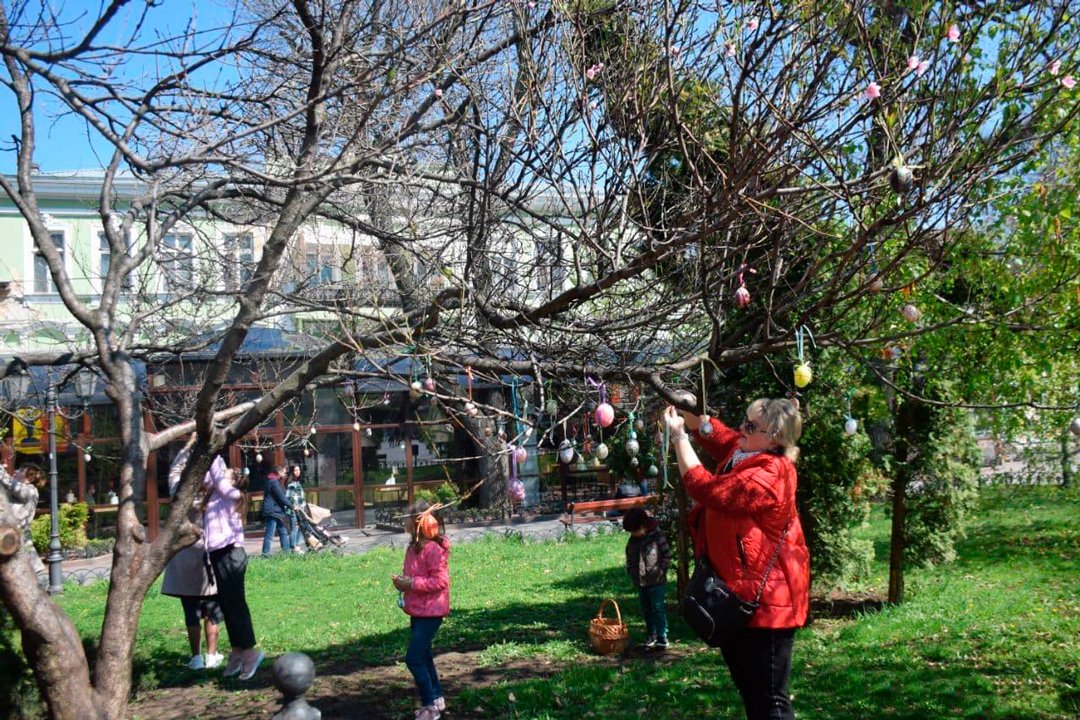 Накануне Пасхи в Горсаду появилась тематическая инсталляция «Пасхальное дерево». Одесситы украсили живое растение расписными яйцами и лентами. Многие писанки мастера сделали своими руками.
