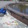 Неизвестные повредили гранитную плитку на нижней чаше фонтана, расположенного на углу Ак. Заболотного и Крымского бульвара.