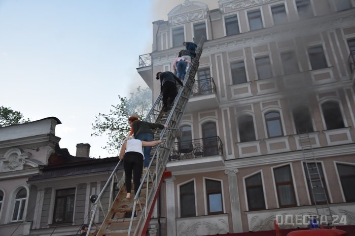 Во время тушения пожара из окна 5-го этажа здания отеля по автолестнице спасено 7 человек, из них 1 ребенок.