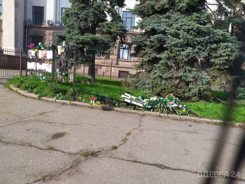Возле Дома профсоюзов убрали цветы, которые принесли одесситы 2 мая.
