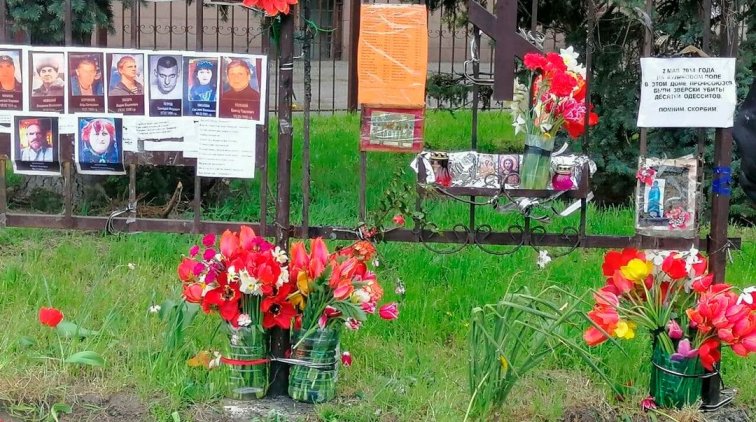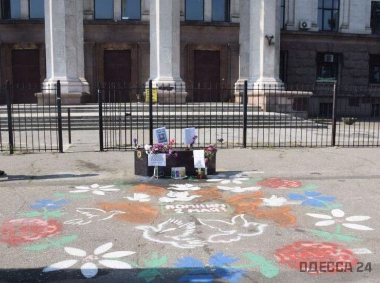 Море цветов, которые принесли сюда в день годовщины трагической гибели 2 мая, убрали. Тюльпаны теперь цветут на клумбах перед Домом профсоюзов.