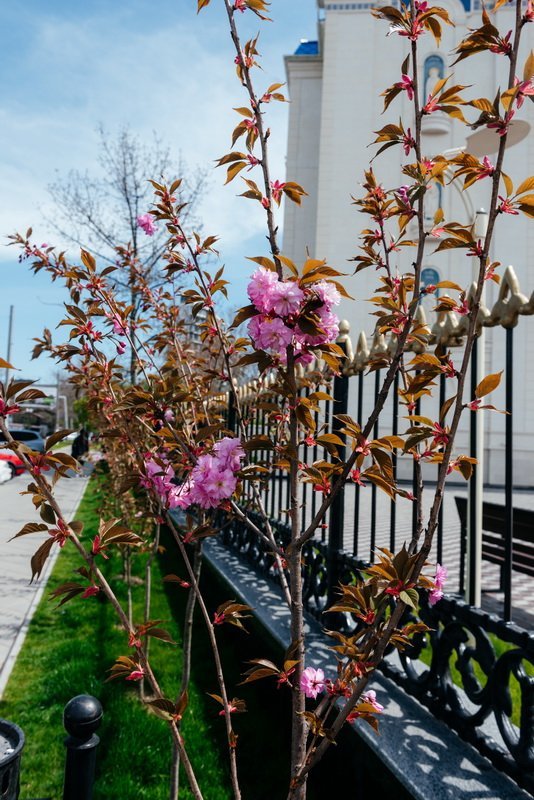 Воодушевляющая и радующая глаз Аллея сакур, высаженная на улице Академической в конце 2020-го года, подверглась бездумному и бездушному нападению. Несколько деревьев были выкорчеваны под корень и украдены вандалами, после них осталась лишь голая почва и проходящая вдоль насаждений система полива. Уровень воспитания некоторых наших земляков оставляет желать лучшего.